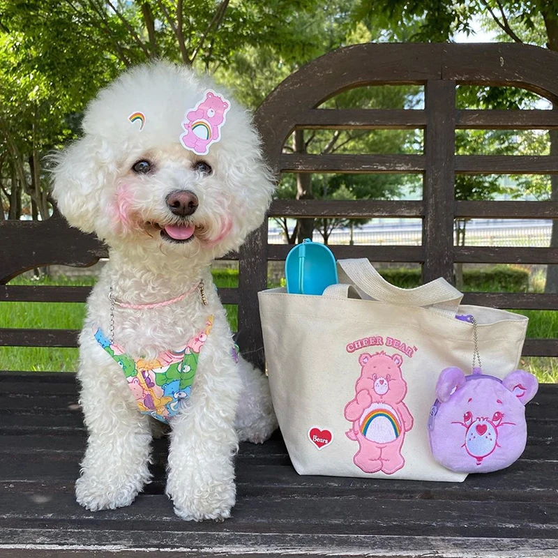 Name: Mochila con bordado de oso para perro, accesorio de lona con diseño de dibujos animados, ideal para transportar mascotas, dispensador de Bolsa para popó de viaje